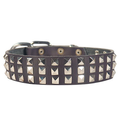 Stilvolle, modische Lederhalsbänder mit Beschlägen aus vernickeltem Stahl für Hunde: