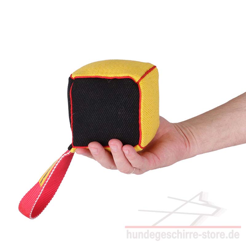 Dieses große grelle Beißspielzeug für Hunde ist aus dichtem French Linen mit Hilfe der Mantelfäden genäht und mit umweltsicherem Material gefüllt. Die Stoffe sind gefahrlos und hundefreundlich. Das Würfel-Spielzeug hat eine weiche Nylon-Handschlaufe, die sicher angenäht und bequem ist. Der Artikel passt für Dressur, Training, Spaß, Biß-Arbeit und Entwicklung von Biss-Fähigkeiten.