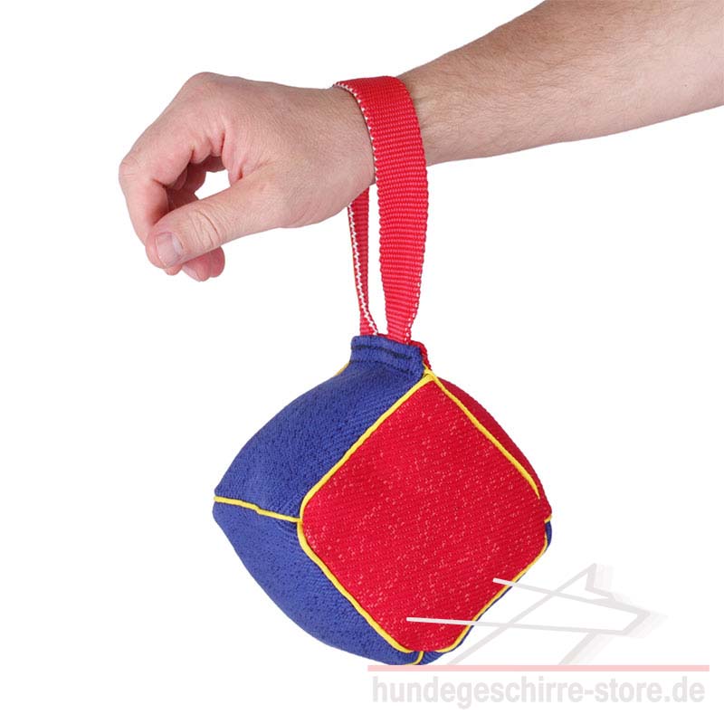 Dieses Beißspielzeug für Hunde in Form des großen Würfels ist aus spitzenqualitativem und gefahrlosem Stoff – French Linen – geschaffen. Das Beißkissen wird in zwei Größen hergestellt: großes Modell – 13 cm und kleines – 10 cm. French Linen Stoff ist vor Hunde Zähnen und Krallen beständig, die Kanten des Artikels sind abgenäht, damit sie nicht aufgehen werden. Elemente der Spielzeug-Konstruktion sind mit Hilfe der starken Mantelfäden zusammen genäht. Als Füllmasse dient spezialisiertes synthetisches Material mit Futterdecke, das einen hohen Elastizitätsbeiwert hat. Deswegen ist das Accessoire weich und hält perfekt seine Form. Bequeme Schlaufe ist sicher ans Spielzeug angenäht, passt für große Belastungen. Es ist bequem das Erzeugnis in der Hand zu halten und dabei keine Angst zu haben, dass begeisterter Hund Sie während des Trainings zufällig an die Hand beißen wird. Dieses Beißkissen für Hunde passt perfekt für Spiele, Drive- und Motivation Erhöhung, es wird die Aufmerksamkeit Ihres Pfleglings während der Dressur wecken. Trainings mit solchem Hundezubehör hilft Ihr Haustier zur Arbeit mit dem Hetzarm vorzubereiten. Der Hund wird ans Material angewöhnen und danach einfacher zum Beißarm angehen, denn für Schaffung des Schutzarmes werden ähnliche Stoffe benutzt. Dieses Hunde Beißspielzeug mit Nylon-Handgriff wird in kombinierten Farben hergestellt, und in der Farbe, die am Lager ist, geliefert.