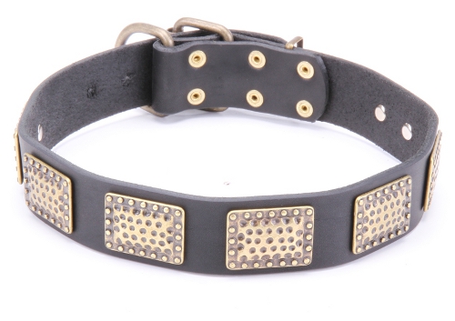 Model: C89##1053 Hundehalsband aus Leder mit "veralteten" Platten, extraordinär