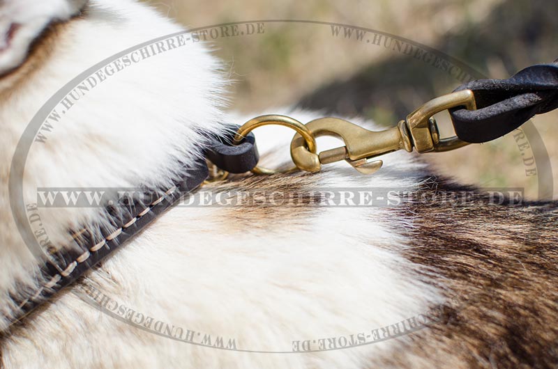 Dieses Erziehungshalsband wird Ihre Aufmerksamkeit besonders ziehen. Wir wollen sagen, dass es wirklich schwer zu widerstehen wird. Bestellen Sie bitte dieses Zughalsband aus echtem Leder für schnelles und effektives Hundetraining und bessere Kontrolle während Spaziergang im Park, wenn Ihr Vierbeiner um andere Hunde verrückt werden kann. Prüfen Sie dieses Hundehalsband und seien Sie sicher, dass es eine richtige Wahl ist! Zughalsband aus Leder ist von Spitzenqualität und bietet die erstaunliche Haltbarkeit. Unsere Designer haben dieses Lederhalsband für Hundeerziehung und Training aus wirklich geöltem echtem Leder produziert, deswegen ist der Hundebedarf bequem, weich und verschleiß- und reißfest. Das Halsband ist in Innenseite mit dem hellen Leder gepolstert und das addiert auch ergänzende Bequemlichkeit und das Royal Aussehen zum Produkt. Wählen Sie nur das beste Hundezubehör für Ihren vierbeinigen Freund!